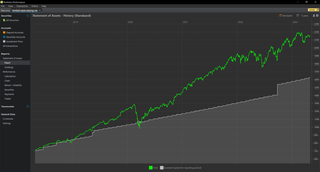 In de reacties bij een eerdere blogpost wees een van de lezers mij op Portfolio Performance. Een gratis stukje open-source software om je beleggingen te volgen. Ik heb een paar jaar geleden al eens naar een vroege versie van deze software gekeken, maar die was toen nog erg beperkt in functionaliteit. Nieuwsgierig heb ik toch nog eens naar de huidige versie gekeken, en ik werd aangenaam verrast. Dit was inmiddels een volwassen tool. En ik kon mijn vinkjes zetten. Open source, gratis, mijn data wordt lokaal opgeslagen, en ik kan mijn gegevens ook weer exporteren.