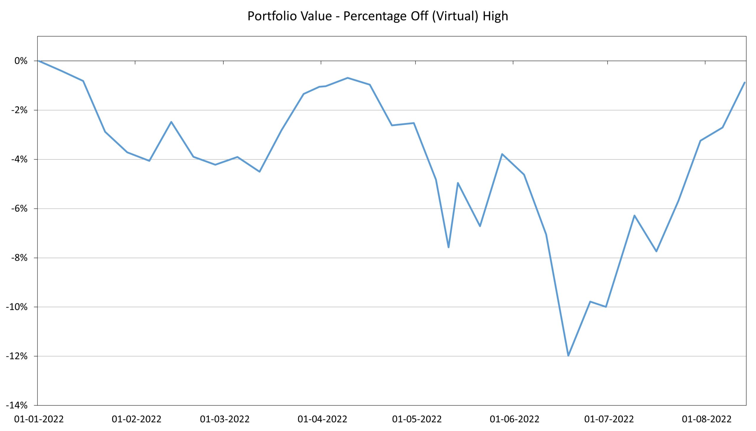 Toen ik afgelopen zaterdag in mijn beleggingsspreadsheet op de knop ‘Bijwerken’ drukte viel het me namelijk op. Mijn portefeuille is de afgelopen maand omhoog gespoten. In absolute termen staat de portefeuille op het hoogste punt ooit, en als ik corrigeer voor alle inleg sinds het laatste hoogste punt dan sta ik nog slechts 0,9% onder mijn Virtual All-Time High (VATH). Als je me dat twee maanden geleden had voorspeld dan had ik je voor gek verklaard