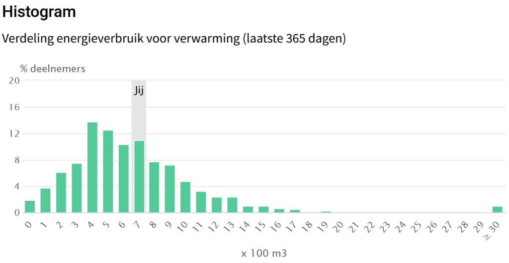 In het stookseizoen 2022 – 2023 hebben wij onze positie in de benchmark ten opzichte van andere gebruikers bij MinderGas weten te verbeteren. In onderstaande grafiek onze positie voor het afgelopen stookseizoen.