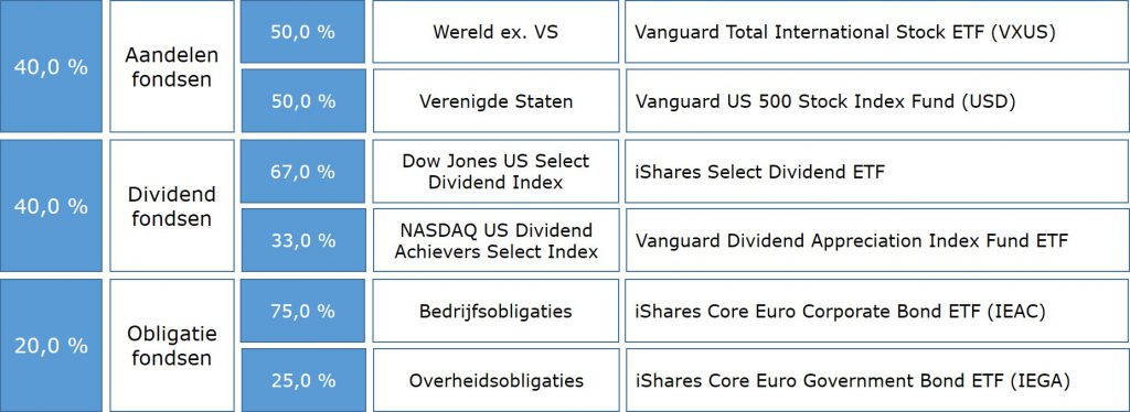 Omdat ik vrij recent ben begonnen met beleggen en ik een flinke cash buffer aanhoudt is deze nog zo’n 40% van m’n totale vermogen, dus ik heb voorlopig nog niet het gevoel dat ik obligaties nodig heb.