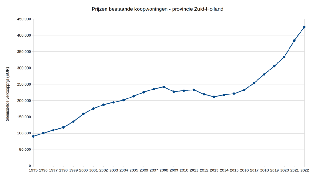 Dan zit er een stevig stuk vermogen in ons huis. Eigen geld dat we bij de aankoop hebben ingebracht, het sindsdien afgeloste deel van onze hypotheek, en een stuk overwaarde. Nog wel. Want de piek in de huizenmarkt lijkt weer even voorbij, al is er in Geldnerd City ook nog niet echt sprake van een daling van de prijzen. En hebben de meest recente berichten het zelfs weer over een lichte stijging. Bij de berekening van ons eigen vermogen is het huis redelijk voorzichtig gewaardeerd op basis van de WOZ-waarde, dus daar maak ik me voorlopig geen zorgen over. Het is wel echt ‘geld in stenen’, en het komt pas beschikbaar voor andere dingen als we Huize Geldnerd zouden verkopen.